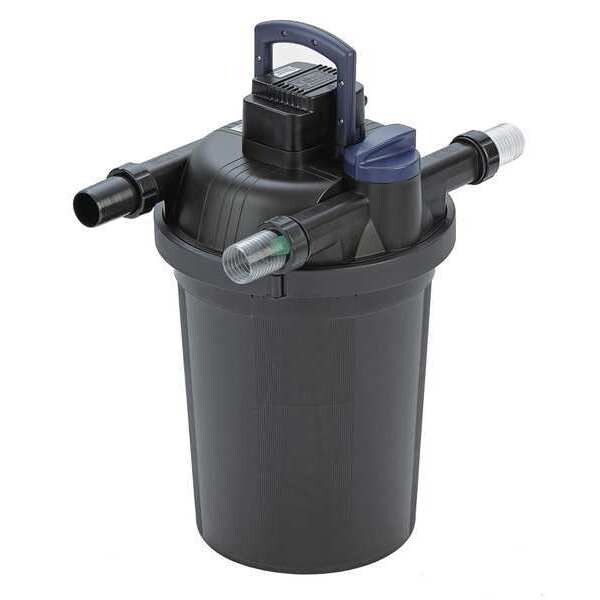 Filter Clarifier, Filter Type Mechanical and Coarse Biological Filters, UVC Ultraviolet Clarification, For Pond Capacity 4,000 gal, Compatible Intake Pipe Size 1 1/2 in, 2 in, Compatible Discharge Pipe Size 1 1/2 in, 2 in, Intake Type Barbed, Maximum Flow Rate 50 gpm, Discharge Type Barbed, Cord Length 15 ft, Overall Height 25 in, Nameplate Voltage 120V AC, Features Built-in Easy-Clean Mechanism, Minimum Flow Rate 8.3 gpm