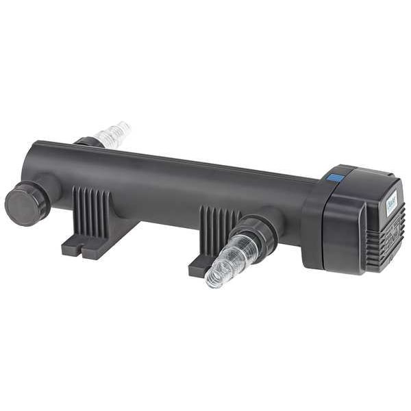 UV Clarifier, Filter Type UVC Ultraviolet Light Clarification, For Pond Capacity 10,000 gal, Compatible Intake Pipe Size 3/4 in, 1 1/4 in, 1 1/2 in, Compatible Discharge Pipe Size 3/4 in, 1 1/4 in, 1 1/2 in, Intake Type Barbed, Maximum Flow Rate 26.7 gpm, Discharge Type Barbed, Cord Length 15 ft, Overall Height 5 in, Overall Width 7 in, Nameplate Voltage 120V AC, Features Adjustable Connection Size, Minimum Flow Rate 26.4 gpm, Housing Material Plastic, Includes 36W Clarifier