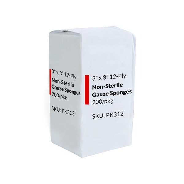 Gauze Sponges, 3in x 3in, 12 Ply, 200 Per Pack