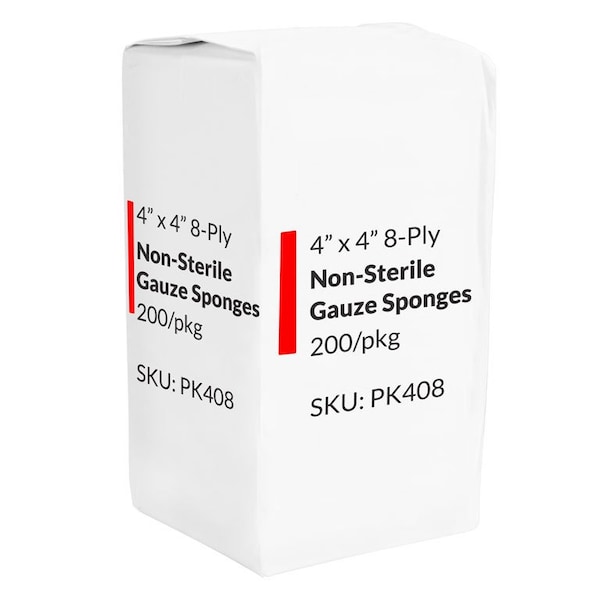 Gauze Sponges, 4in x 4in, 8 Ply, 200 Per Pack