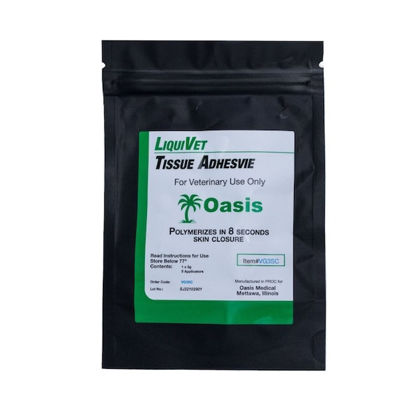 Veterinary use only LiquiVet monomeric formulation that forms a thin, waterproof adhesion to bond tissue in a variety of vet procedures Comes in 3gr dispensing bottles with 5 applicators Fastacting Cyanoacrylate based tissue adhesive for wound care Polymerizes in 8 seconds Ideal for skin closure and to seal nerve endings and capillary beds after cat declaw procedures Excellent for quick repair of minor lacerations, abrasions, and other minor wounds Superior performance in the time necessary to close a wound For external lacerations, not to be used internally May be alternative to products like ZipStitch instant stitches and Strips For skin closure Best suited for small, superficial lacerations Quick and virtually painless to use Wears off in the days and weeks Reduce the chances of an infection