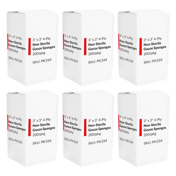 Non-Woven Gauze Sponges 3 x 3 4 Ply 200 Per Pack, 6 Packs