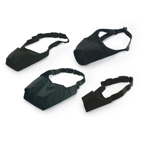 These high-quality water-resistant nylon muzzles come in a variety of sizes and have a quick release snap. An expanded line of quick-release muzzles. Safety Muzzles fit securely with quick-adjust straps for a snug fit. Comfort: Lightweight nylon feels and looks more professional than gauze roll. Quality: Reinforced stitching to assure long-lasting use. MZSET Also sold as a convenient starter set with savings discount: MU0 4'' MU2 5.5'', MU3 7'', MU4 9.5'', MU 4XL 12'' , MU5 8.5'' , MU5XL 11''