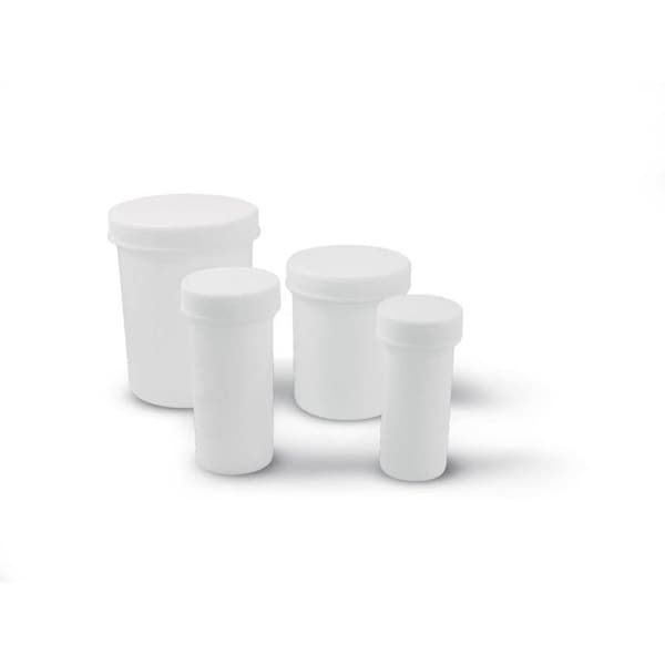 Plastic ointment jars in sizes from 1 oz. to 16 oz. Approx. diameter 3 1/2'', hieght 3 3/4''