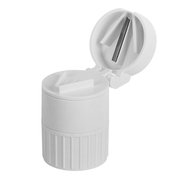 Crushes pills to a fine powder Splits pills in halves or quarters. Separate twin compartment to store dry medicine. Great size for travel, fits in your purse. Heavy duty plastic.