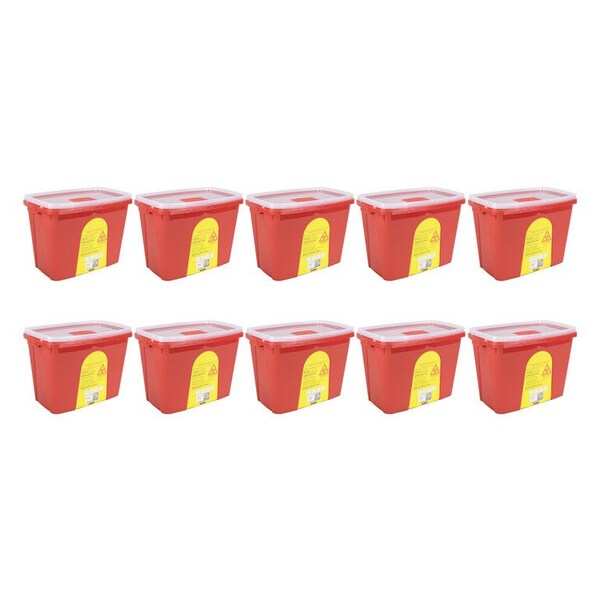 For safe disposal of sharps in restricted access areas Versatile lid accommodates contaminated items of various sizes Constructed of puncture resistant polypropylene Locking top flap Easy to assemble
