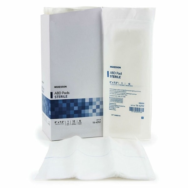 White Abdominal Pad Sterile 7-1/2 X 8 Inch, 12 Per Box