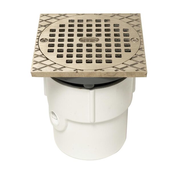 PVC,Adj Drain,5 In.,Nickel,Grate,Square