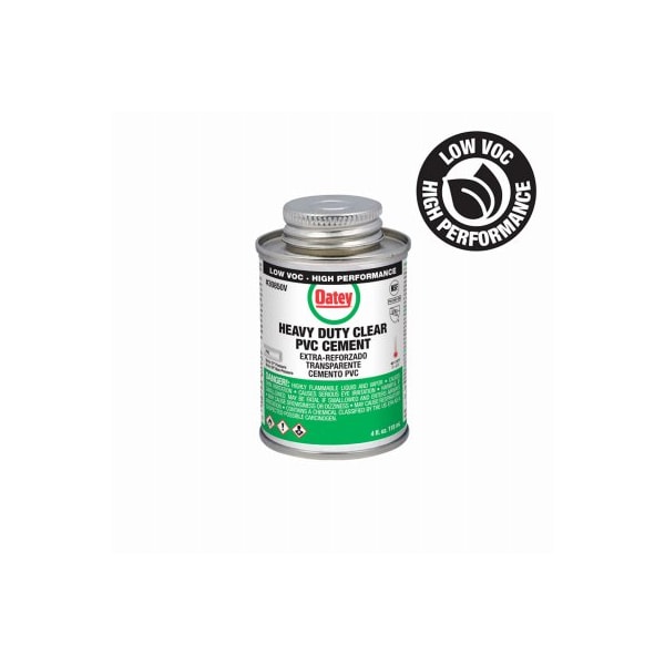 4 OZ, Clear, Heavy Bodied Cement, For PVC Pipe Fittings, Up To 12 Diameter For Schedule 40 Schedule 80, Recommended For All Grades Types Of PVC Pipe Fittings, Potable Water, Pressure Pipe, Gas, Conduit DWV, Recommended Application Temperature 40 Degrees Fahrenheit To 100 Degrees Fahrenheit, Thick Formula Fill Gaps In Large Diameter Pipe Loose Fittings Joints, Meets ASTM D2564