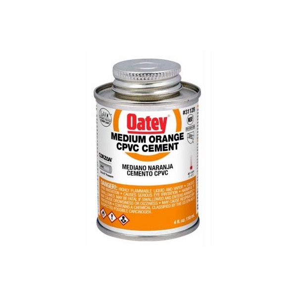 4 OZ, Orange, Medium Bodied, CPVC Pipe Cement, For Use On CPVC Pipe Fittings Up To 6 Diameter, For Copper Tube Size Schedule 80 Potable Water Pressure Pipe, Exceeds ASTM D2846 F493, NSF Certified