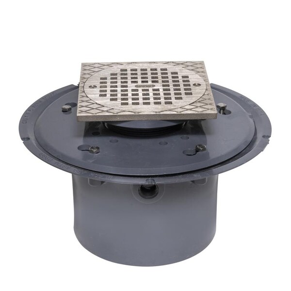 PVC Adj Drain 6 In.,w/6 In.Nick Str Sq