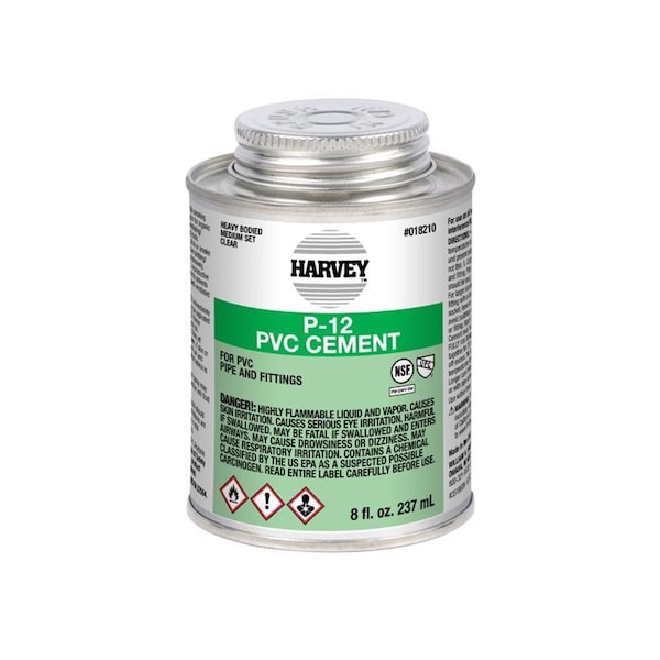 Harvey P-12 PVC Cement is a heavy-bodied, medium-set clear cement formulated for use on all schedules and classes of PVC pipe and fittings up to 12 in. diameter with interference fit. For more than 75 years, Harvey has offered a wide variety of products for the plumbing sector.