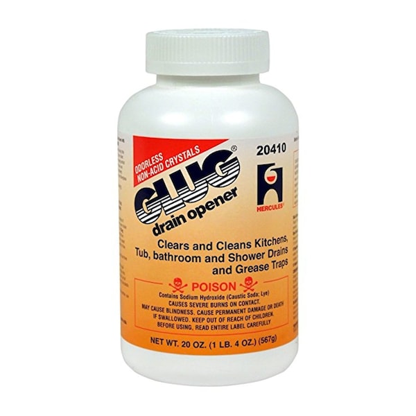Glug can be used for both emergency and preventive maintenance treatments of clogged or slow moving drains and waste lines. Contains no phosphates or aluminum. Does not produce offensive odors or gases normally associated with other drain openers. Ideal for institutional, home, hospital, factory and office buildings use where strong odors are objectionable.