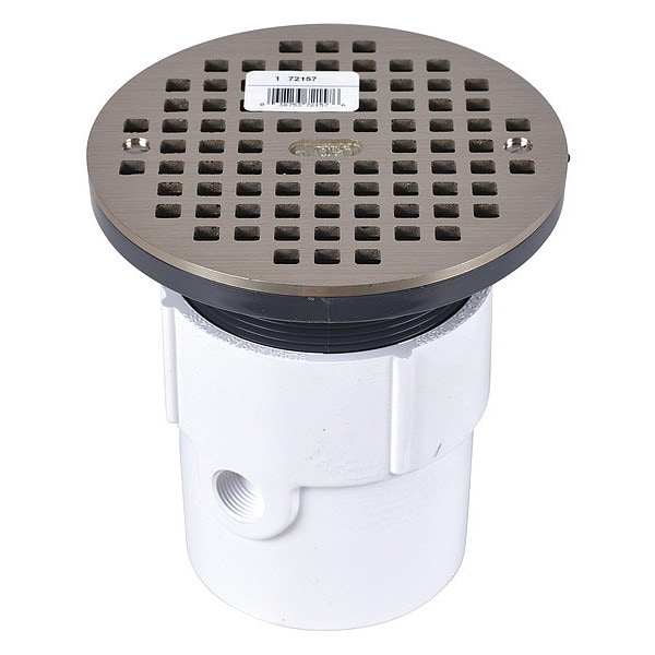Round Adjustable Drain, PVC, Nickel, 3" or 4", Pipe or Hub