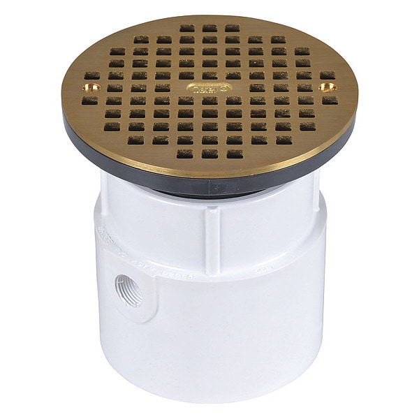 Round Pipe Drain, PVC, Brass, 4", Pipe