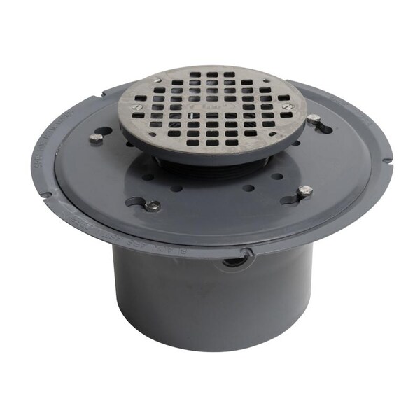 PVC Comrl Adj Drain,6 In.,6 In.Ss Stanr