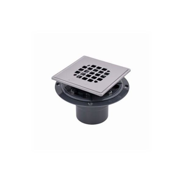 2 Or 3, PVC Drain, With Square Stainless Steel Strainer, Designed For Use On Built Up Shower Bases Of Tile Or Marble