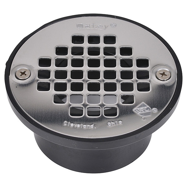 Floor Drain, Standards ASME A112.18.2-2020/CSA B125.2-20, Connection Thread Type Solvent Cement, Flange Diameter 4 1/4 in, Height Above Flange Not Applicable, Includes Strainer Yes, Includes Grate Yes, Nominal Pipe Size 2 in, Pipe Outside Diameter 3 in, Strainer Material Stainless Steel, Drain Material Plastic, Includes Screw-In Strainer, Connection Type Solvent Weld, Ligature Resistant Not Ligature-Resistant, Body Height 2 5/8 in, Product Type Floor Drain, Drain Style Round