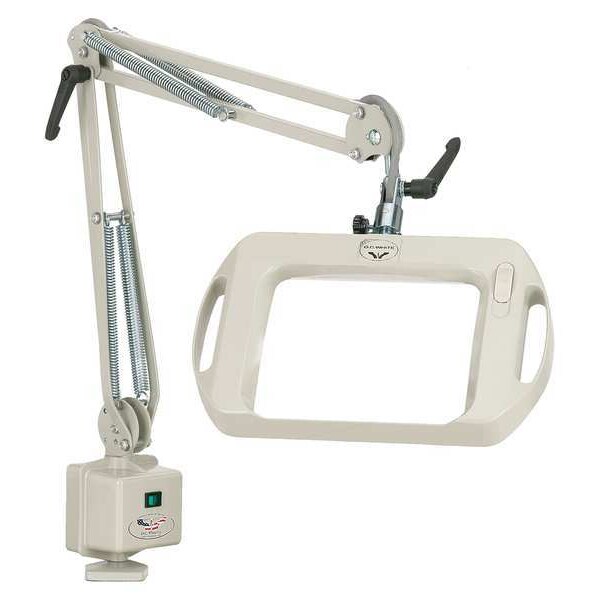 Rectangular Magnifier Light, Arm Reach 43 in, Clamping Capacity 2.5 in, Color White, Color Rendering Index Not Applicable, Color Temperature 6500K, Diopter 3, Lens Diameter Not Applicable, Lens Material Glass, Lens Shape Rectangular, Lighting Technology Fluorescent, Magnification 1.75x, Maximum Brightness Not Applicable, Mount Type Clamp, Operating Voltage 120V AC, Includes Ultraviolet Light No, Application Inspection Tasks on Highly Polished Surfaces, Precision Machining Industries