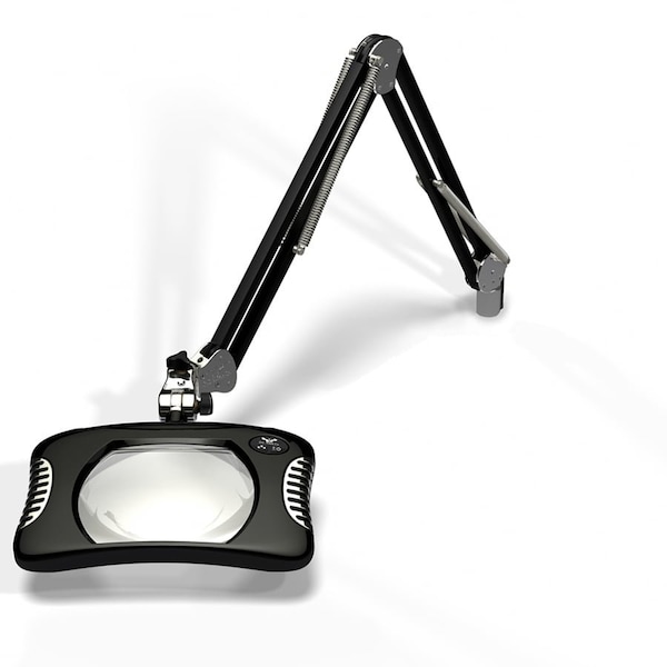Rectangular Magnifier Light, Arm Design Articulating, Arm Reach 43 in, Clamping Capacity 2.5 in, Color Black, Color Rendering Index 80, Color Temperature 5000K, Diopter 4, Lens Diameter Not Applicable, Lens Material Glass, Lens Shape Rectangular, Lighting Technology LED, Magnification 2x, Maximum Brightness 1,500 lm, Operating Voltage 100 to 240V AC, Includes Ultraviolet Light No, Arm Material Aluminum, Dimmable Yes, ESD Safe Yes, Features Internal Spring Arm