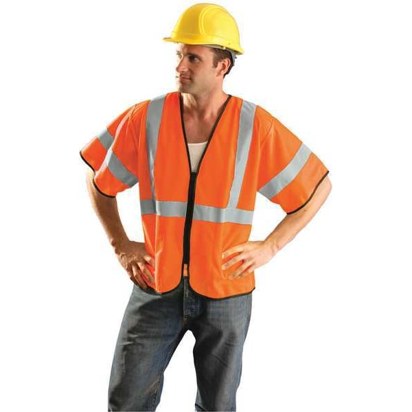 High Visibility Vest, ANSI Class 3, Vest Size S/M, Traffic Safety Vest Color Orange/Red, Fits Chest Size 32 In. to 38 In., Gender Unisex, Stripe Color Silver, Vest Material Polyester Mesh, Vest Closure Type Zipper, ATPV Rating Not Rated, Hazard Risk Category (HRC) 0, Vest Stripe Color Family Silver, Back Stripe Pattern U-Block, Vest Length 27 in, Number of Pockets (Inside) 2, Number of Pockets (Outside) 0, Number of Pockets with Closure 0, Features Mesh, Dual sized