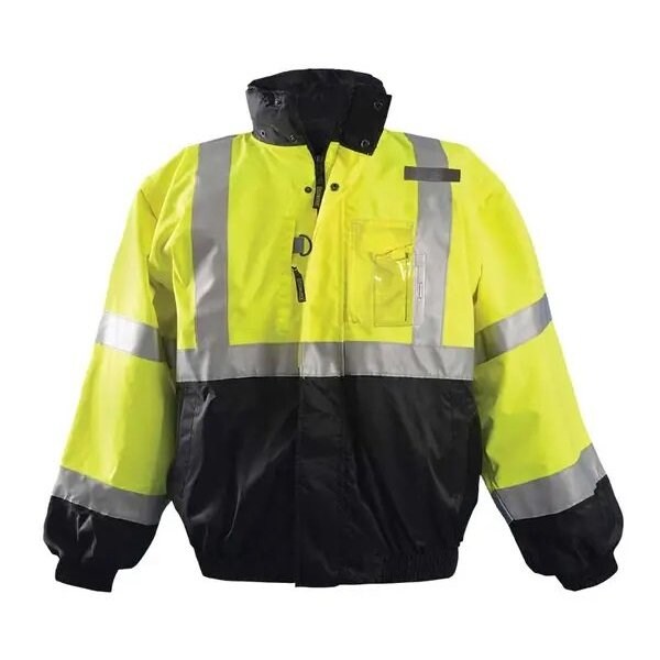 High Vis Jacket, Garment Type Jacket, Style Bomber Jacket, ANSI Class 3, ANSI Type R, Front Closure Type Zipper, Color Yellow, Size S, Number of Outside Pockets 4, Includes Hood Yes, Hood Style Detachable, Maximum Chest Size 36 in, Temperature Rating -2 Degrees to 46 Degrees F, Includes Removable Liner Yes, Standards ANSI/ISEA 107-2015 Class 3 - Type R, Minimum Chest Size 34 in, Features Outer Jacket Sleeves are Removable, Removable Lining