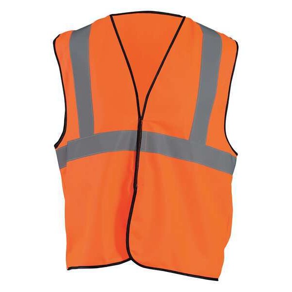 High Visibility Vest, ANSI Class 2, Vest Size 4XL/5XL, Traffic Safety Vest Color Orange/Red, Fits Chest Size 56 In. to 62 In., Gender Unisex, Stripe Color Silver, Vest Material Polyester Mesh, Vest Closure Type Hook-and-Loop, ATPV Rating Not Rated, Hazard Risk Category (HRC) 0, Vest Stripe Color Family Silver, Back Stripe Pattern U-Block, Vest Length 26 in, Number of Pockets (Inside) 1, Number of Pockets (Outside) 0, Number of Pockets with Closure 1, Features Dual sized