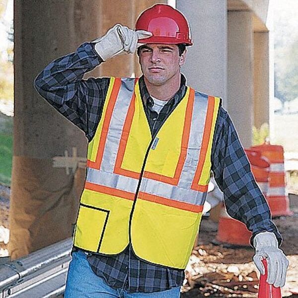 High Visibility Vest, ANSI Class 2, Vest Size L, Traffic Safety Vest Color Yellow/Green, Fits Chest Size 40 In. to 42 In., Gender Unisex, Stripe Color Silver, Vest Material Modacrylic, Vest Closure Type Hook-and-Loop, ATPV Rating Not Rated, Hazard Risk Category (HRC) 0, Vest Stripe Color Family Silver, Back Stripe Pattern U-Block, Vest Length 29 in, Number of Pockets (Inside) 1, Number of Pockets (Outside) 1, Number of Pockets with Closure 1, Features 3M Reflective Material, Two-Tone