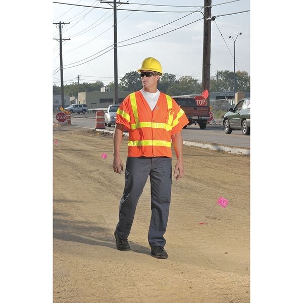 Hi-Visibility Vest, ANSI Class 3, Vest Size L, Traffic Safety Vest Color Orange/Red, Gender Unisex, Vest Material Polyester Mesh, Standards ANSI/ISEA 107-2010