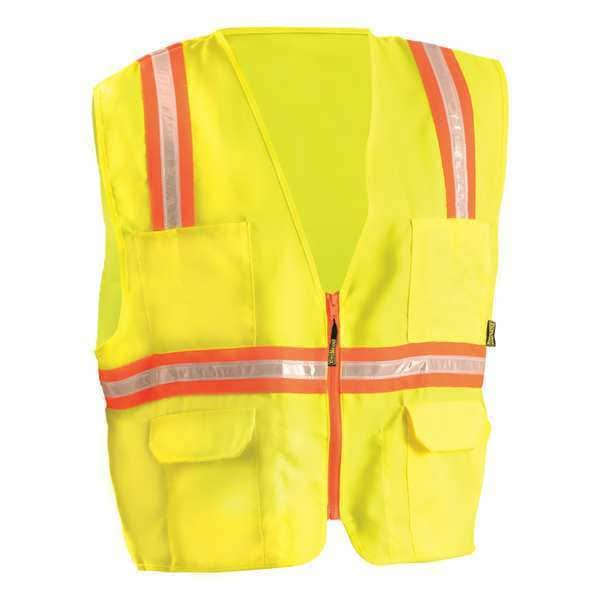 Hi-Vis Non-Rated Vest,Yellow,L, Vest Size L, Features 3/4 in White Gloss Tape with Contrasting Trim, 4 Pen Compartment Packet