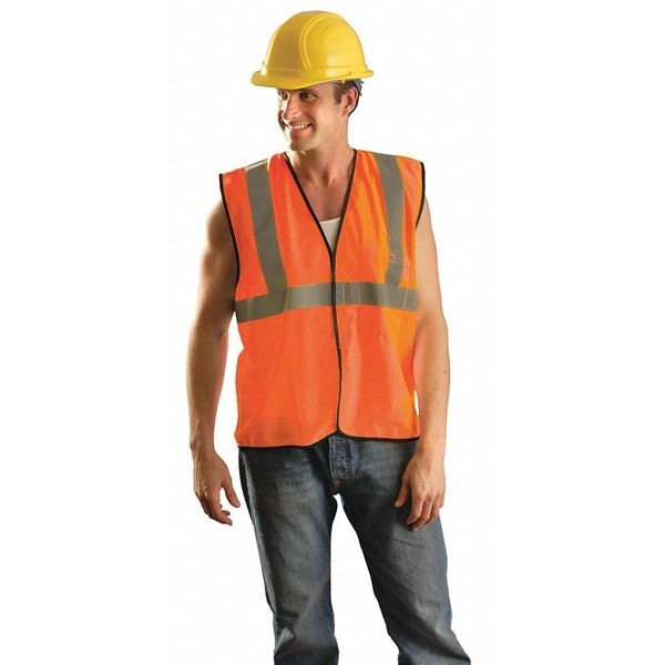 High Visibility Vest, ANSI Class 2, Vest Size L/XL, Traffic Safety Vest Color Orange/Red, Fits Chest Size 42 In. to 46 In., Gender Unisex, Stripe Color Silver, Vest Material Polyester, Vest Closure Type Hook-and-Loop, ATPV Rating Not Rated, Hazard Risk Category (HRC) 0, Vest Stripe Color Family Silver, Back Stripe Pattern U-Block, Vest Length 27 in, Number of Pockets (Inside) 1, Number of Pockets (Outside) 0, Number of Pockets with Closure 1, Features Mesh, Dual sized