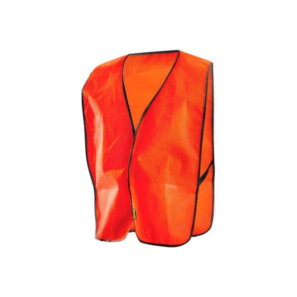Value mesh vest, hi-vis orange, 4xl features: non-ansi no reflective tape elastic side straps 100% polyester mesh pockets: 1 inside lower left hook & loop closure