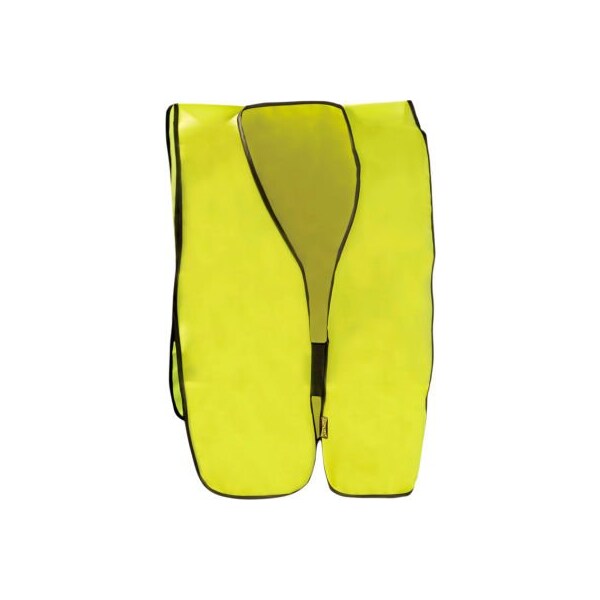 Value solid vest, hi-vis yellow, 4xl features: non-ansi no reflective tape elastic side straps 100% polyester tricot pockets: 1 inside lower left hook & loop closure