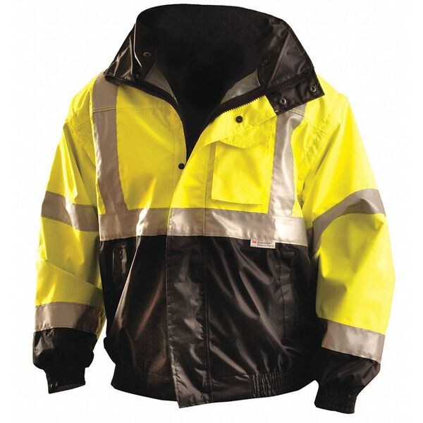 2" 3M Scotchlite Reflective Material; Can be Worn 4 Ways; Removable Outer Jacket Sleeves; Black Collar, Cuffs and Waistband; Rollup and Removable Hood; 2 Lower Front, 1 Front Flap, 1 Inner Pockets; Zipper and Snap Closure; Temperature Rated 46F to -2F
