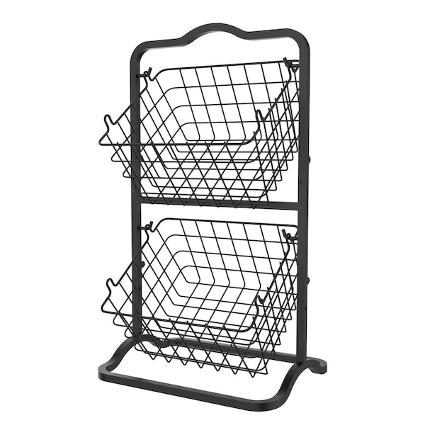18.22 x 8.11 x 10.31 in. 2-Tier Storage Kitchen Wire Basket Stand, Black