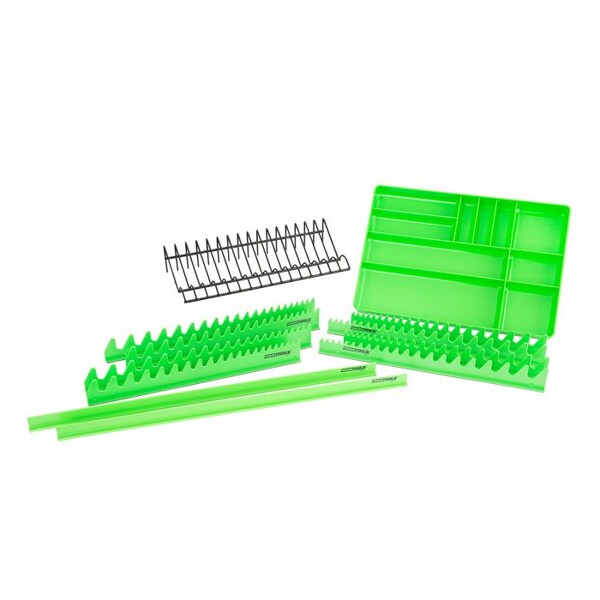 Finding the tool you need in a cluttered toolbox can be frustrating and time consuming. Optimize your time under the hood by eliminating time spent looking for the right tool with OEMTOOLS organizational equipment. Add the 12 Piece Tool Organizer Set to your toolbox or work bench for easy organization -- allowing you to easily identify the right tool for the job. 10-Compartment Drawer Organizing Tray Features a Low-Profile Design for Shallow Tool Box Drawers. Adhesive Drawer Dividers Stay in Place When Cart is Moving and When Drawers Open and Close. Pliers Holder Rack & Organizer is Outfitted with Extra-wide Spaces for Storing Up to 16 Pliers with Rubber Grips. Organize Up to 80 Wrenches with (2) 4 Piece Wrench Holder Sets. Includes: 10-Compartment Drawer Organizing Tray (22213), 2 Piece Drawer Divider (22214), Pliers Holder Rack & Organizer (22215), (2) 4 Piece Wrench Holder Sets (22217). Dimensions: 16" (L) x 11" (W) x 1.5" (H)