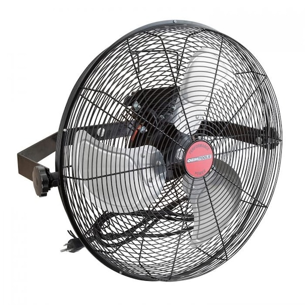 To quickly cool down your work area in your garage or warehouse, look no further than the OEMTOOLS 18 Inch Heavy Duty Workstation Wall Mount Fan. The 1/20 HP 3-speed motor moves 3850 CFM of air, and