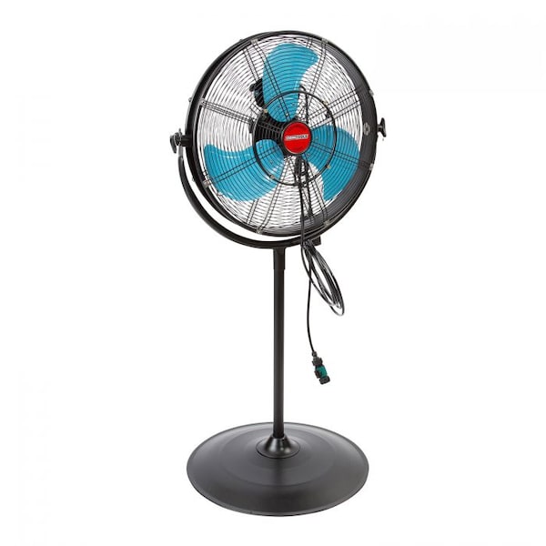 20 Inch Tilting Pedestal Misting Fan will keep your outdoor space cool and comfortable, even when temperatures soar. Its energy efficient design and metal blades allow the internal orbital fan to move 5400 CFM of air. IP 44 Rated Water Resistant Motor with Misting Ring, 3-Speed Motor Allows Operator to Control Airflow Volume, Size: 20", Voltage: 120 V/60 Hz