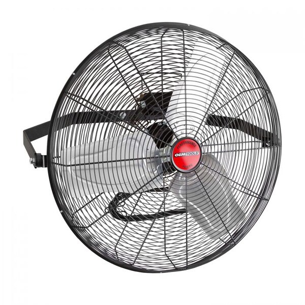 24" Heavy Duty Workstation Wall Mount Oscillating Fan. The 1/5HP three speed motor moves 7000