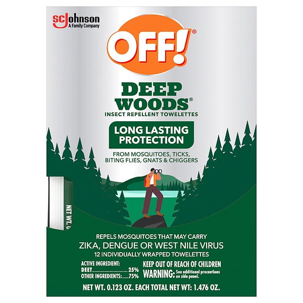 Insect Repellent Wipes, Targeted Insects Biting Flies, Chiggers, Gnats, Mosquitos, Ticks, Active Ingredients DEET, Indoor/Outdoor Use Outdoor, DEET Concentration 25.00 Percent, Container Size 144 ct, Container Type Packet, Form Wipes, Insect Group Flying and Crawling, Dilution Ratio Ready to Use, Insect Control Type Repels, Net Weight 2.42 oz, Standards EPA Registered, Package Quantity 144