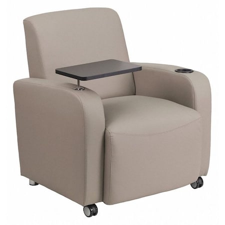 Contemporary Guest Chair, Gray Back, 41 in W 27" L 35" H, Raised Tablet, Leather Seat