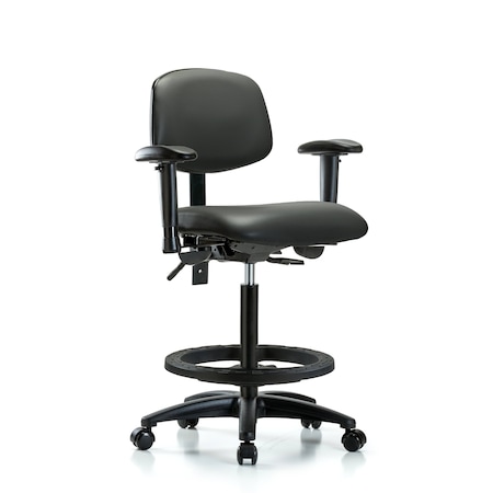 Poly Chair, High Bench, Med Back, Tilt, Arms, Foot Ring, Casters, Blue