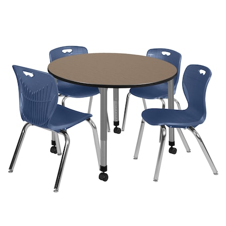 Tables > Height Adjustable > Rectangular Mobile Table & Chair Sets, 72 W, 30 L, 23-34 H, Mahogany