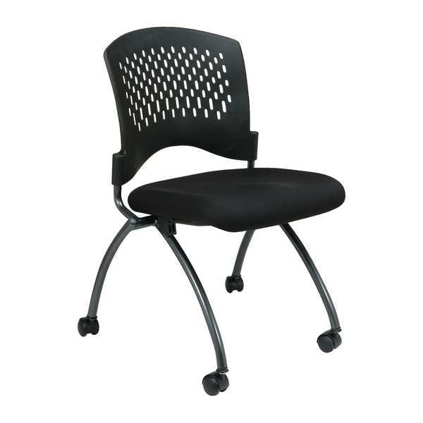 Folding Chair, Pro Line II Series, Overall Height 34 in, Overall Width 24 1/2 in, Overall Depth 22 in, Seat Height 19 1/4 in, Seat Width 18 in, Seat Depth 19 in, Back Height 14 1/4 in, Back Width 18 1/2 in, Seat Color Coal, Back Color Black, Frame Color Titanium, Seat Material Fabric, Back Material Plastic, Frame Material Metal, Unassembled, Cushion Thickness 2 1/2 in, Arm Style No Arm, Weight Capacity 250 lb, Caster Type Carpet, Package Quantity 2
