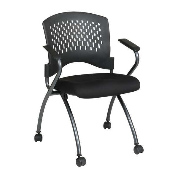 Folding Chair, Pro Line II Series, Overall Height 34 in, Overall Width 24 1/2 in, Overall Depth 22 in, Seat Height 19 1/4 in, Seat Width 18 in, Seat Depth 19 in, Back Height 14 1/4 in, Back Width 18 1/2 in, Seat Color Coal, Back Color Black, Frame Color Titanium, Seat Material Fabric, Back Material Plastic, Frame Material Metal, Unassembled, Cushion Thickness 2 1/2 in, Arm Style Fixed Arms, Weight Capacity 250 lb, Caster Type Carpet, Package Quantity 2