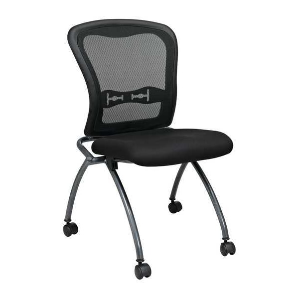 Folding Chair, Pro line II Series, Overall Height 36 1/2 in, Overall Width 24 in, Overall Depth 23 3/4 in, Seat Height 19 1/4 in, Seat Width 18 1/4 in, Seat Depth 19 in, Back Height 20 3/4 in, Back Width 21 1/2 in, Seat Color Coal, Back Color Black, Frame Color Titanium, Seat Material Fabric, Back Material Mesh, Frame Material Metal, Unassembled, Cushion Thickness 2 1/2 in, Arm Style No Arm, Weight Capacity 250 lb, Caster Type Carpet, Package Quantity 2