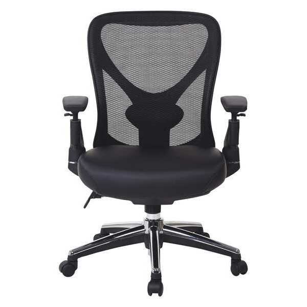 Desk Chair, Overall Width 25 3/4 in, Overall Depth 25 1/4 in, Seat Color Black, Frame Color Silver, Back Color Black, Seat Depth 18 1/2 in, Seat Width 19 1/2 in, Seat Material Leather, Back Material Mesh, Frame Material Nylon, Weight Capacity 250 lb, Series Pro Line II, Back Height 18 1/2 in, Back Width 19 3/4 in
