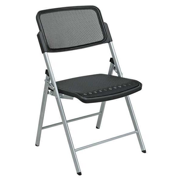 Folding Chair, Pro Line II Series, Overall Height 34 1/4 in, Overall Width 20 1/4 in, Overall Depth 22 in, Seat Height 17 3/4 in, Seat Width 18 1/4 in, Seat Depth 18 1/4 in, Back Height 11 in, Back Width 20 1/4 in, Seat Color Black, Back Color Black, Frame Color Silver, Seat Material Mesh, Back Material Mesh, Frame Material Steel, Assembled, Cushion Thickness Not Padded, Arm Style No Arm, Weight Capacity 400 lb, Caster Type None, Package Quantity 2