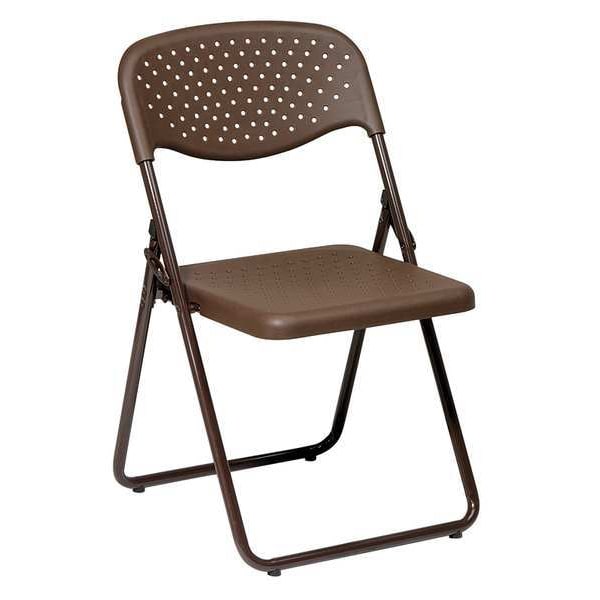 Folding Chair, Work Smart Series, Overall Height 32 in, Overall Width 19 in, Overall Depth 20 1/2 in, Seat Height 17 3/4 in, Seat Width 16 in, Seat Depth 16 1/2 in, Back Height 9 1/2 in, Back Width 19 in, Seat Color Brown, Back Color Brown, Frame Color Brown, Seat Material Plastic, Back Material Plastic, Frame Material Steel, Assembled, Cushion Thickness Not Padded, Arm Style No Arm, Weight Capacity 300 lb, Caster Type None, Package Quantity 4
