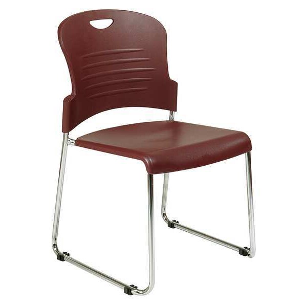 Stacking Chair, Work Smart Series, Overall Height 33 1/2 in, Overall Width 19 in, Overall Depth 22 in, Seat Width 18 1/4 in, Seat Depth 18 in, Back Height 16 1/4 in, Back Width 16 1/4 in, Seat Color Burgundy, Back Color Burgundy, Frame Color Chrome, Seat Material Plastic, Back Material Plastic, Frame Material Steel, Assembled, Cushion Thickness Not Padded, Arm Style No Arm, Weight Capacity 250 lb, Caster Type None, Package Quantity 2